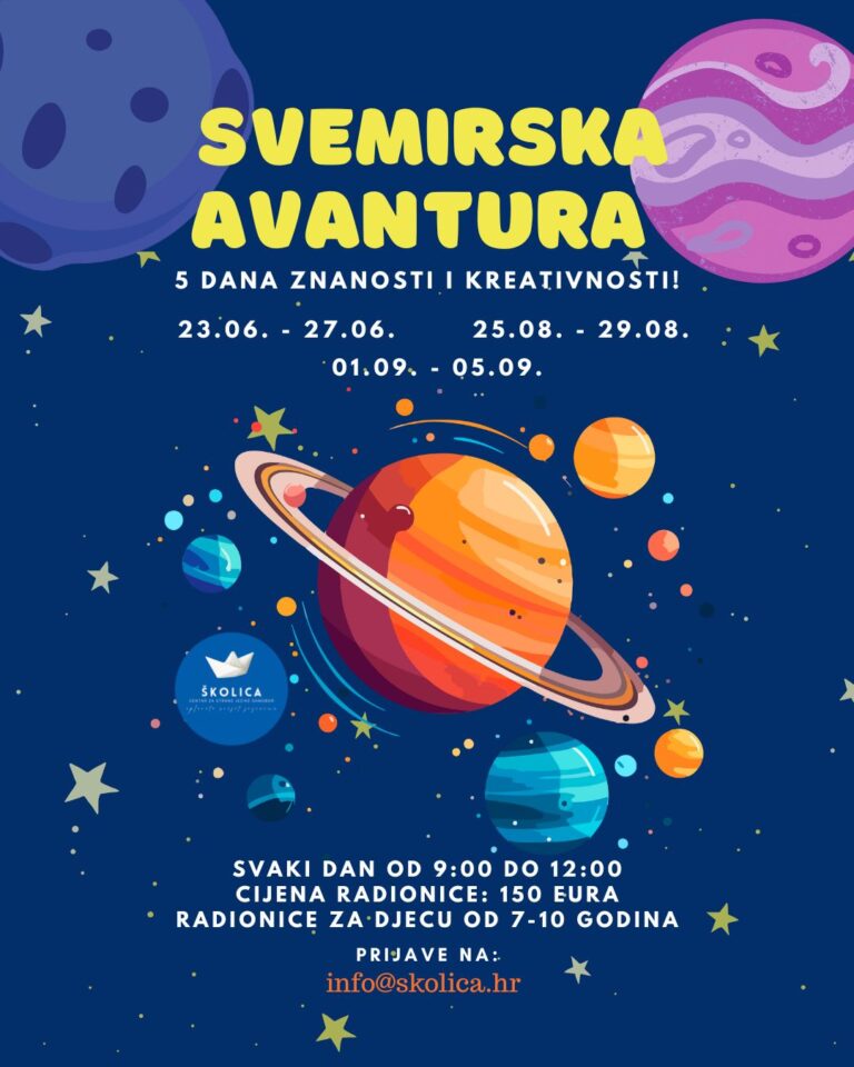 LJETNA RADIONICA ZA DJECU od 7-10 godina DOSTUPNI TERMINI 23.-27.06 25.-29-08. 01.-05.09. 3 SATA DNEVNO / 5 DANA TJEDNO! CIJENA RADIONICE : 150 eura PRIJAVE NA info@skolica.hr +385 91926564